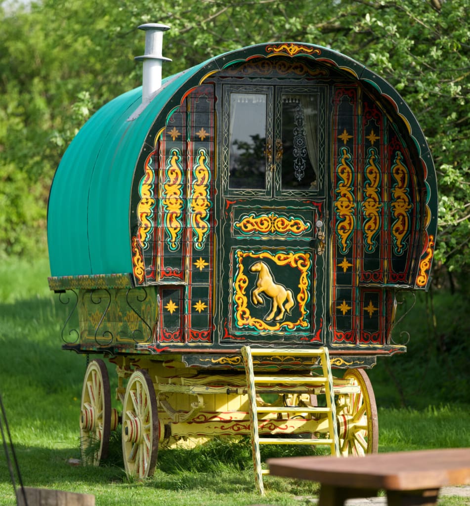 Una roulotte colorata in stile boho chic, arredata con cura e immersa nel verde. Una scelta creativa per chi ama le atmosfere vintage e cerca qualcosa di autentico.