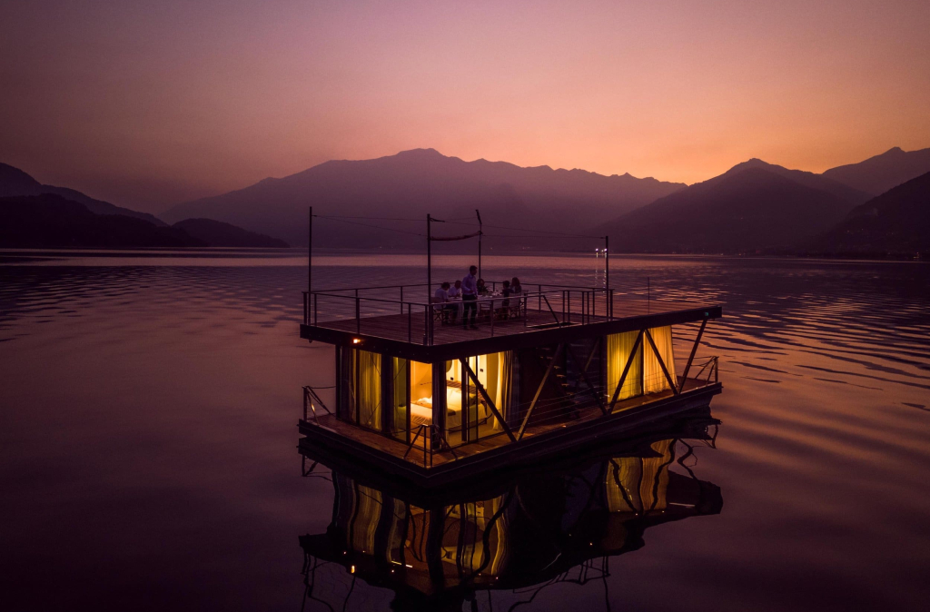 Una cena riservata ed esclusiva a bordo di una barca, seguita da una notte cullata dalle onde in un houseboat dall’atmosfera intima e rilassante.