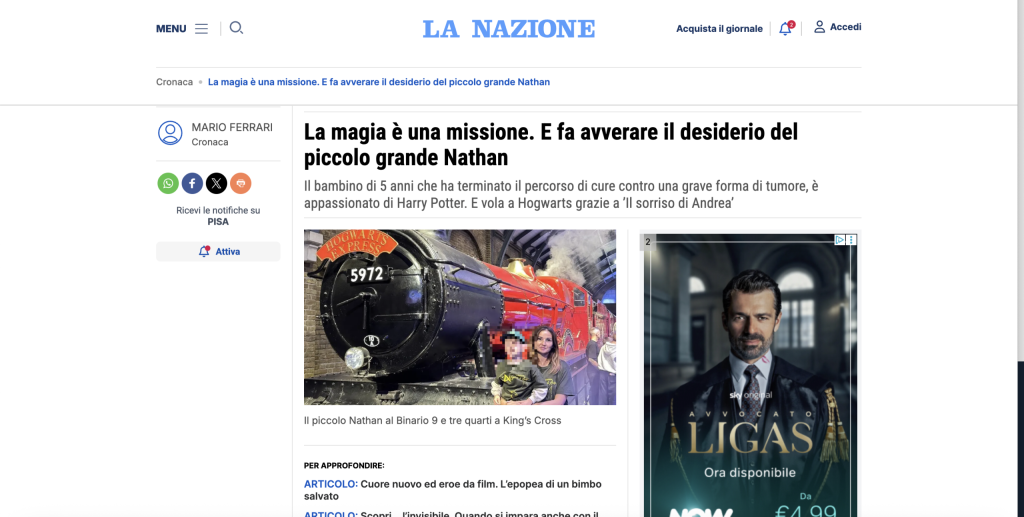 Con l’associazione Il Sorriso di Andrea abbiamo avuto l’opportunità di contribuire alla realizzazione di esperienze speciali per alcuni bambini e le loro famiglie.