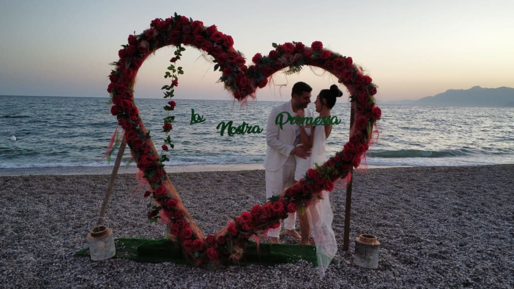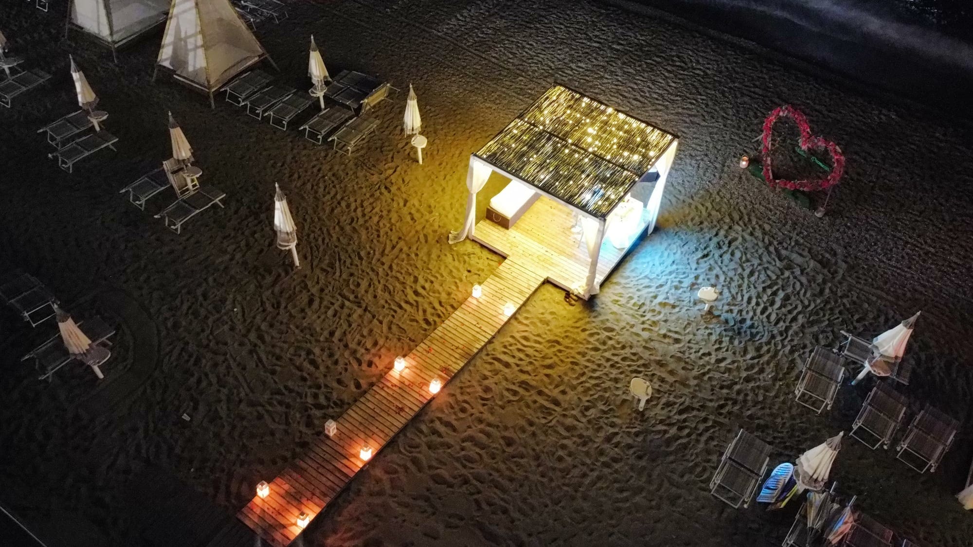 On this enchanted beach, a couple lived a unique moment — the promise of a shared future, surrounded by candles and rose petals.